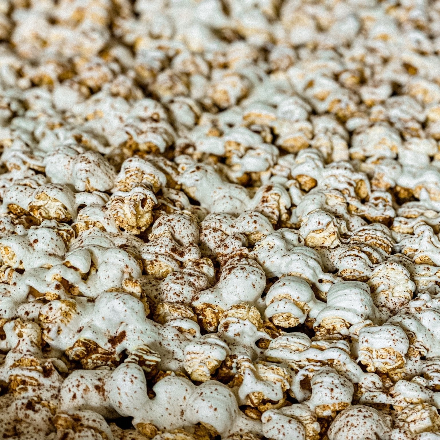 A crunchy pumpkin spiced popcorn, drizzled in our white chocolate icing and with a sprinkle of nutmeg to bring you right into Autumn!